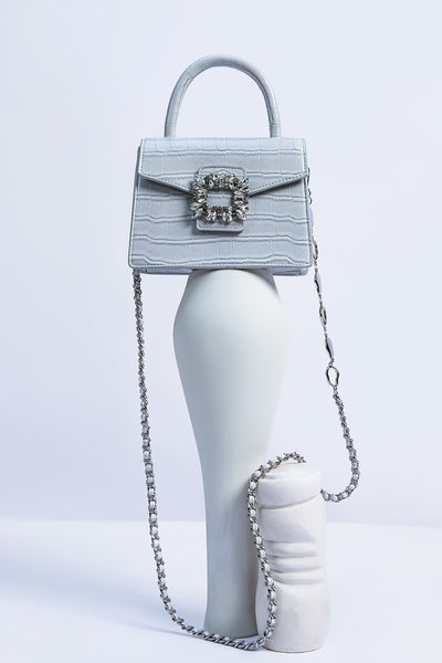This gorgeous embellished clutch features a textured exterior gorgeously accented with mesmerizing crystals that effortlessly create the ultimate look.
