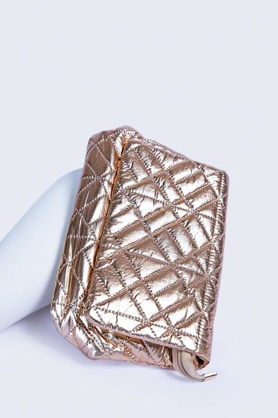 This quilted metallic pouch is the perfect accessory to add instant personality to any look, boasting a sleek metallic leather design with stitch detailing, it smartly organizes a day's worth of essentials.