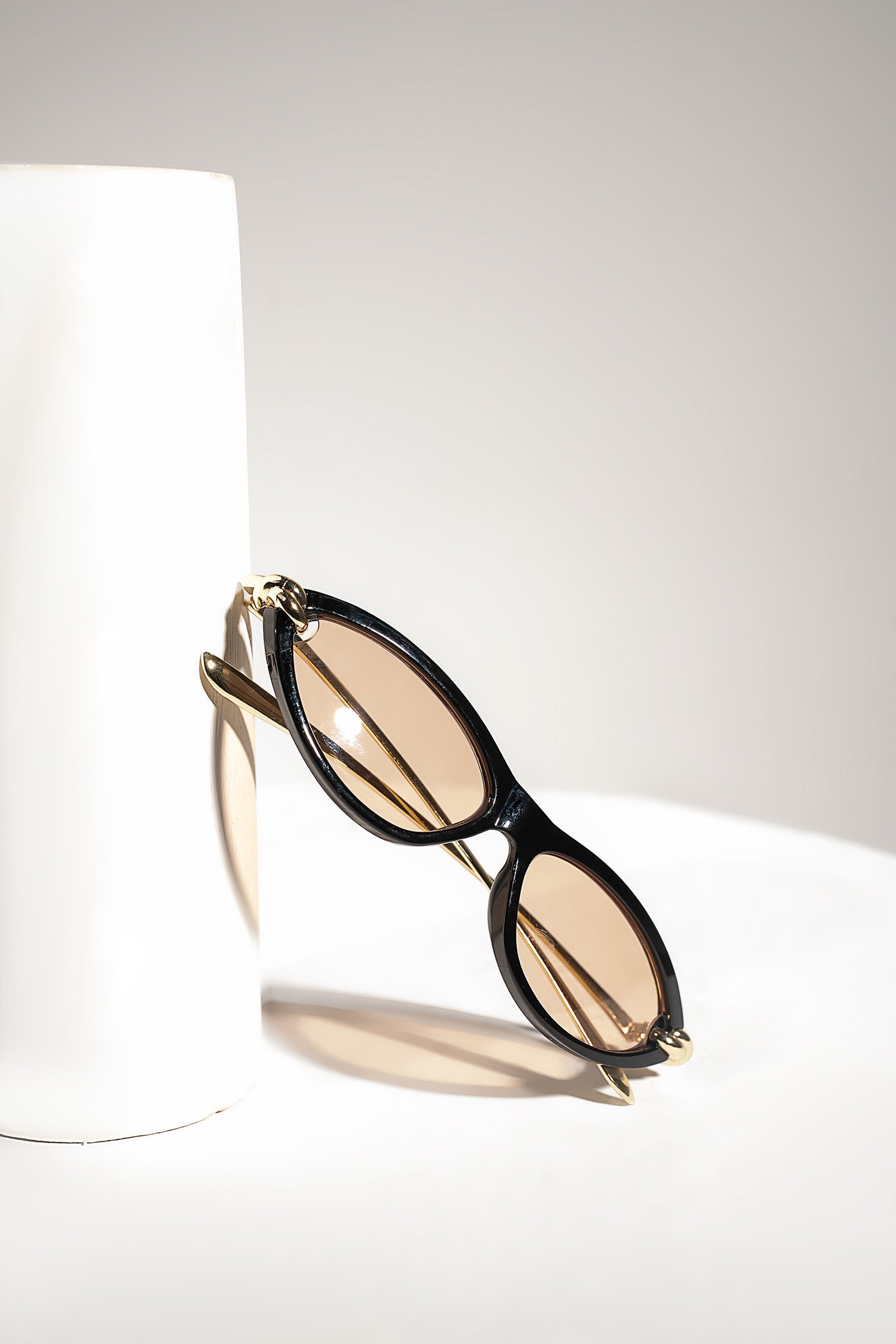 Statement cat-eyes with aerodynamic metal temples and tinted full rims for effortless style.