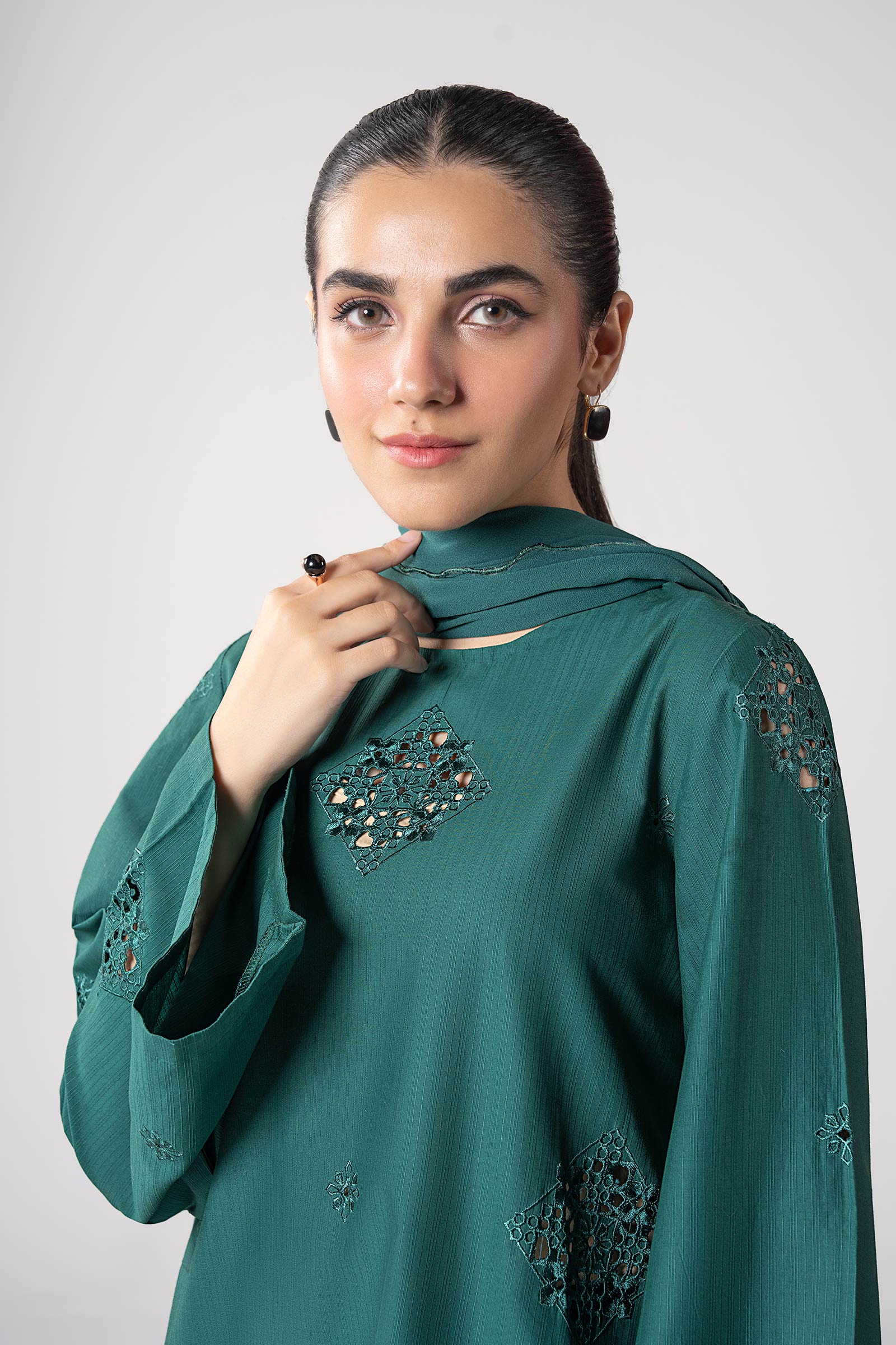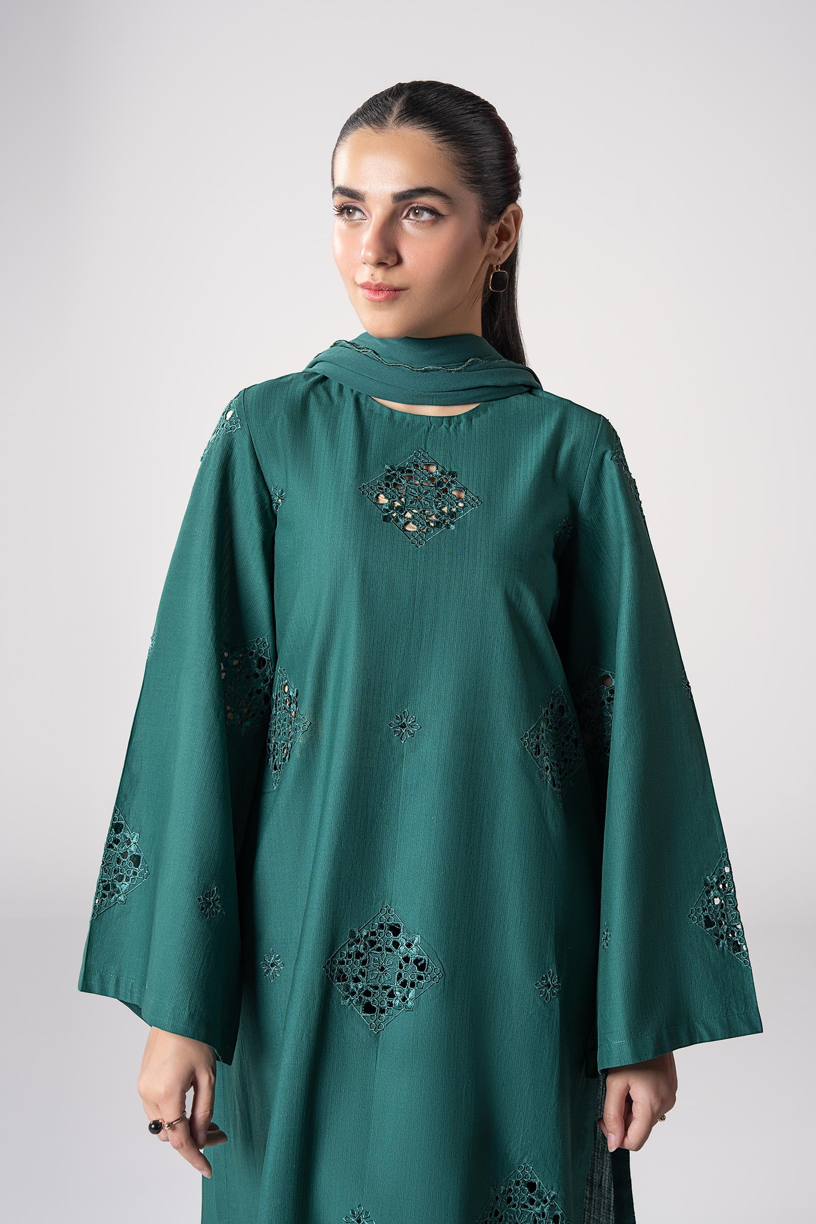 2 Pc Embroidered Textured Cotton Suit
