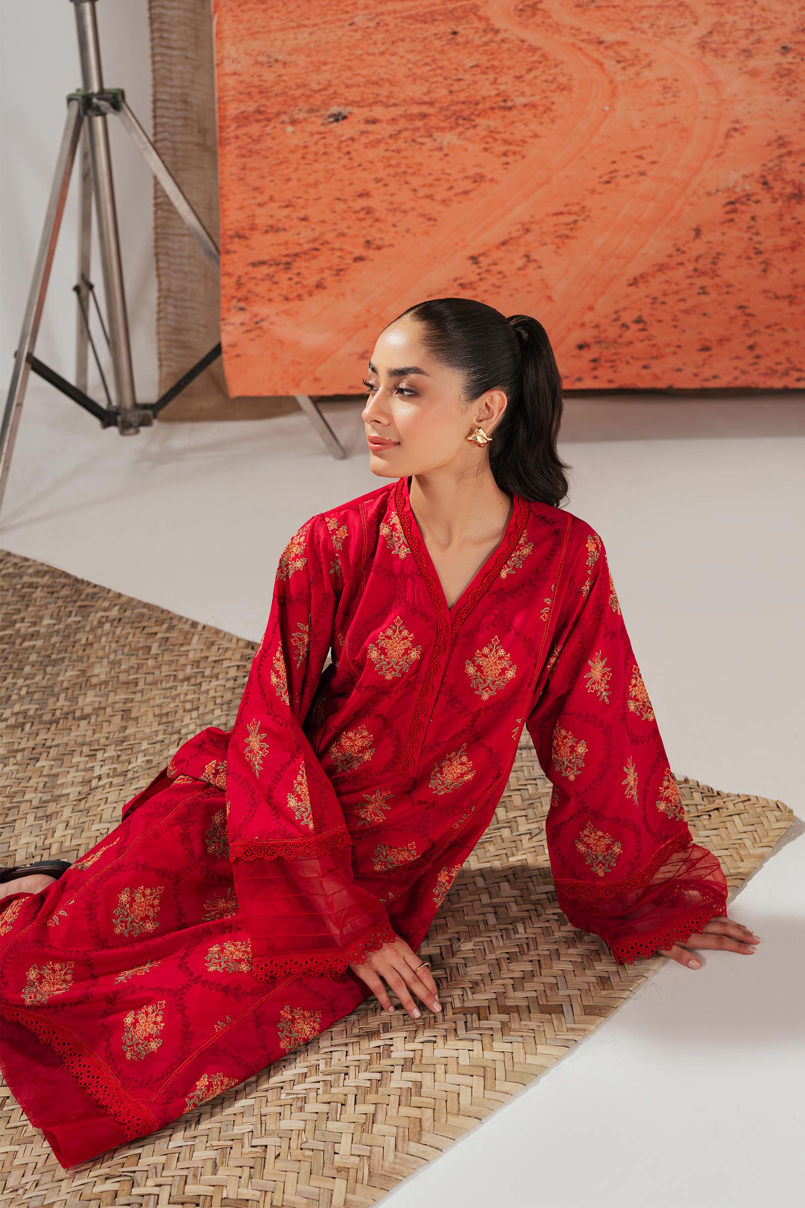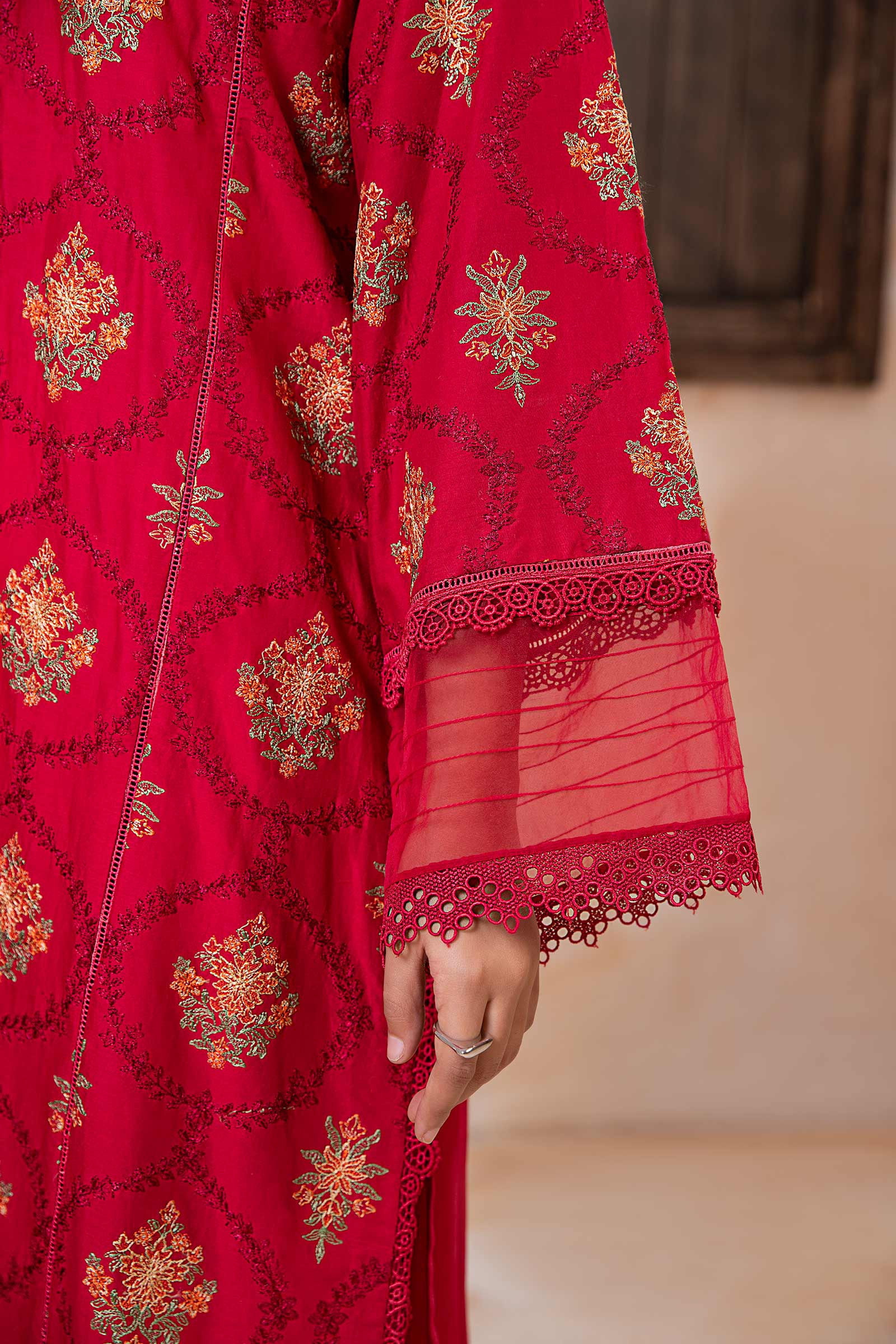Embroidered Full Sleeves With Lace & Organza Detailing