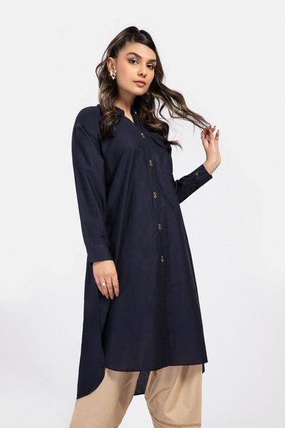 Solid boyfriend kurta with metal button details.