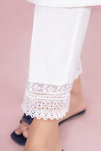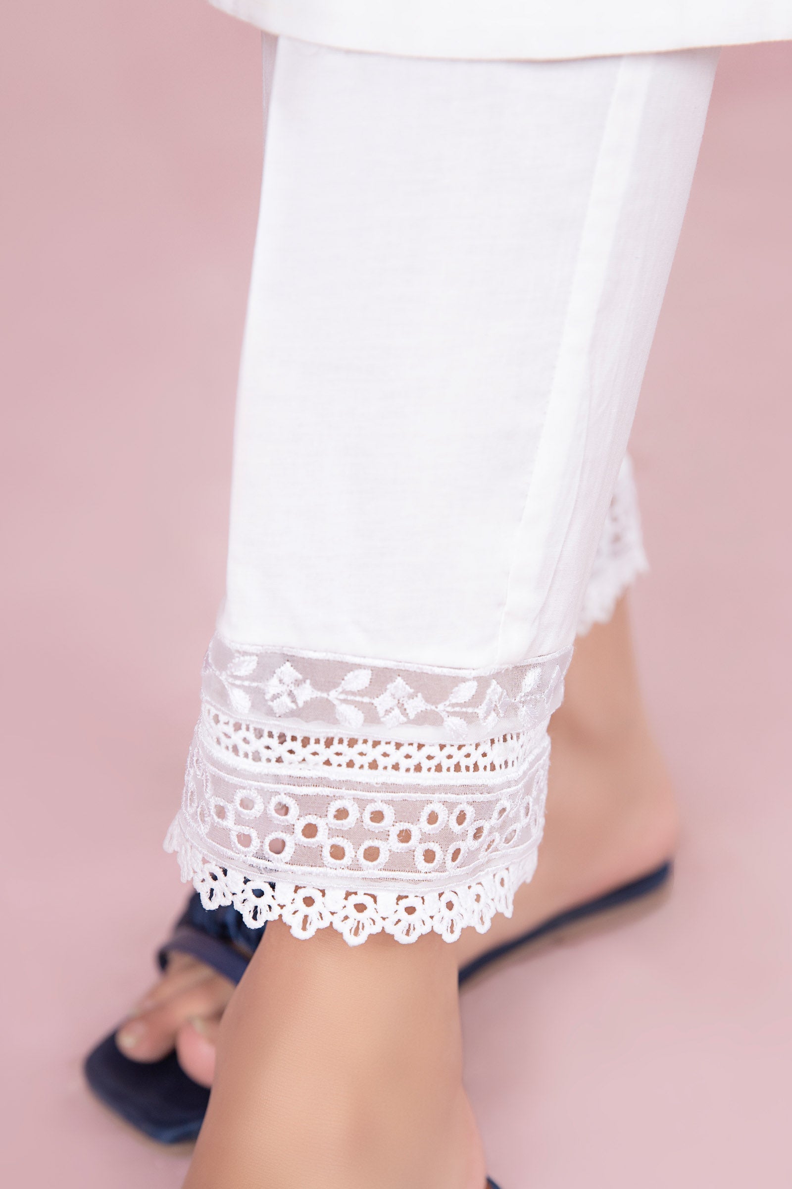 Details: Elastic Waist, Dyed Trousers, Embroidered Hem With Lace Detailing