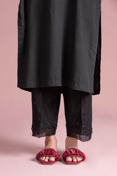Details: Elastic Waist, Dyed Trousers, Embroidered Hem With Organza & Lace Detailing