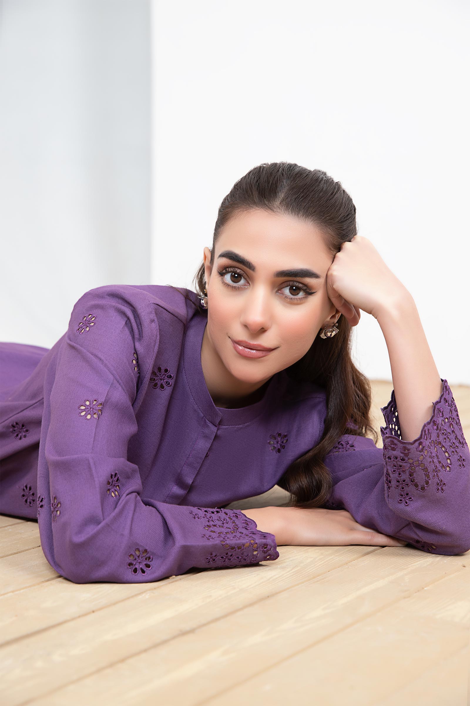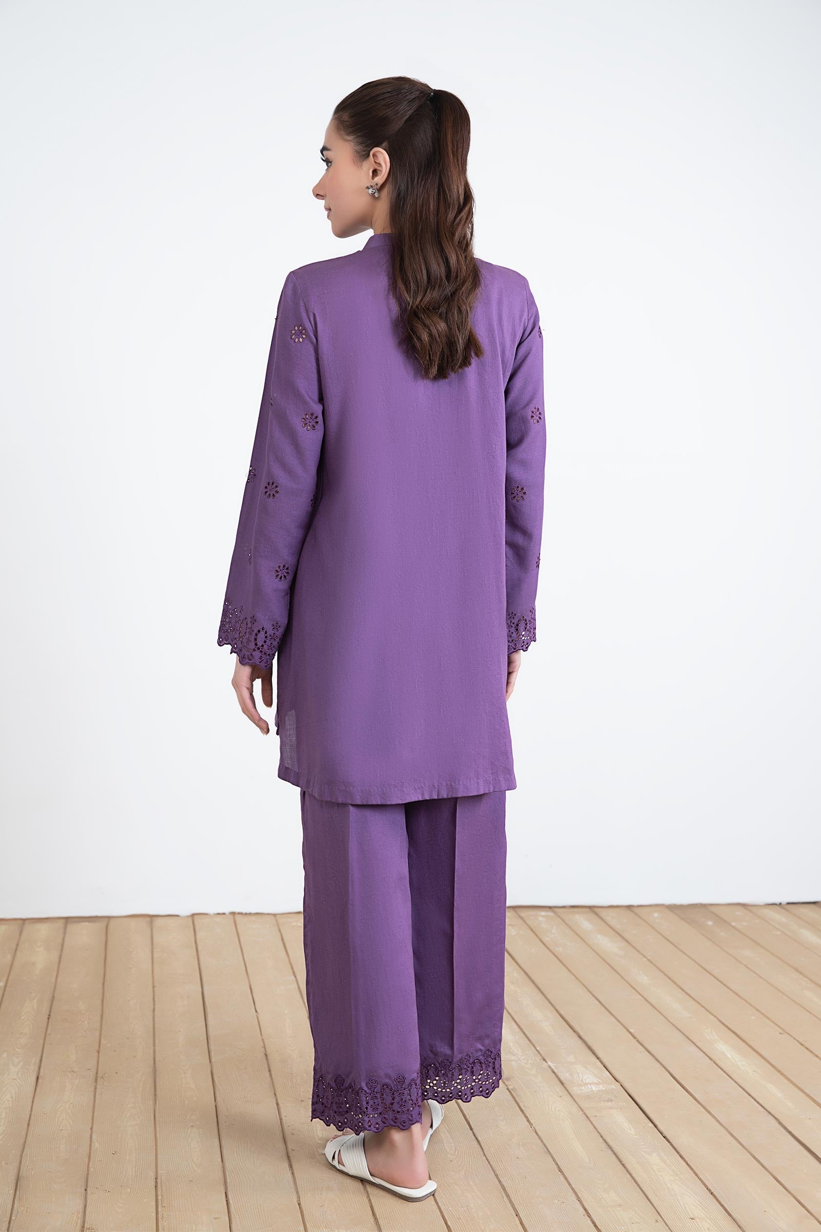 Uplift your daily style with our ash pink embroidered dobby lawn co-ord set featuring intricate schiffli embroidery in delicate floral patterns that instantly captivate the eye.
