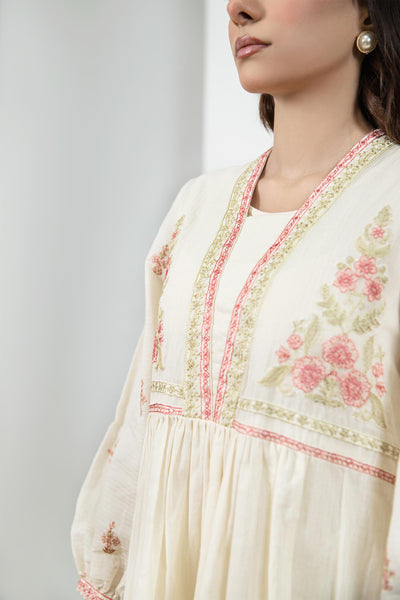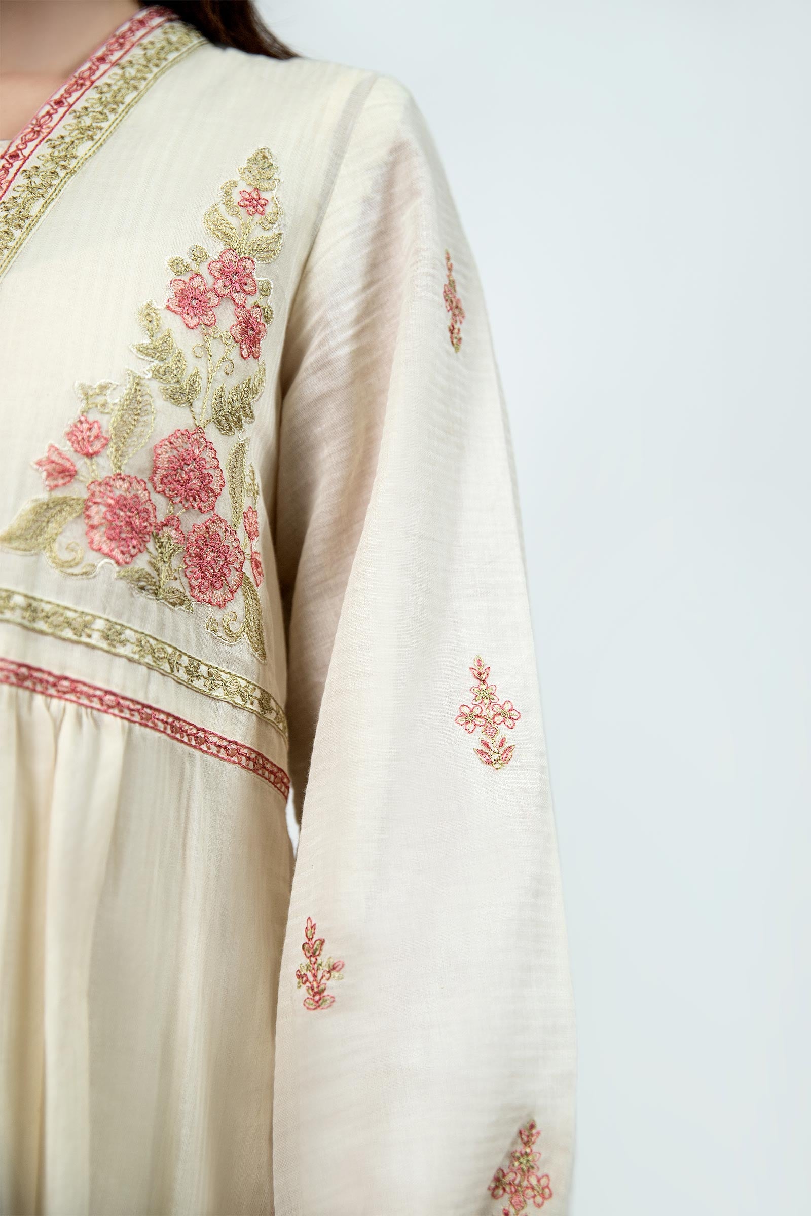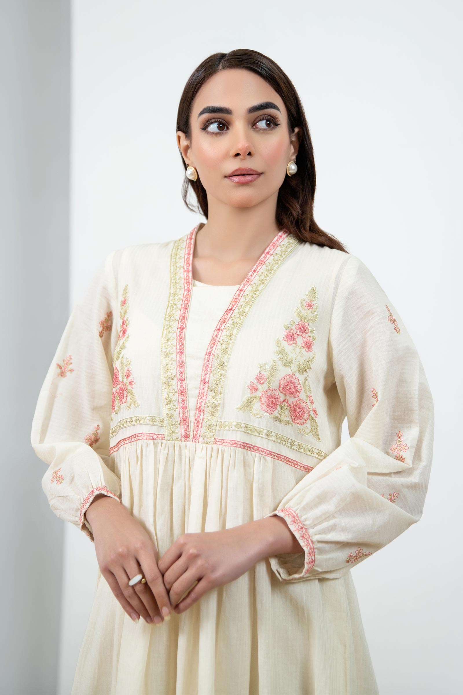 Details: Dyed Front & Back, V Neck Collar, Embroidered Sleeves, Embroidered Front With Gathers