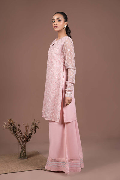 Style like a diva this festive season in our scintillating two-piece embroidered organza ensemble illustrated in a whimsical tea-pink shade. Crafted with rich floral sequins-tilla embroidery with captivating gotta lace and dazzling buttoned loop detailing. Paired with graceful azaar trousers with pleats and gotta lace borders, embrace the gorgeous look at formal events in this statement outfit.