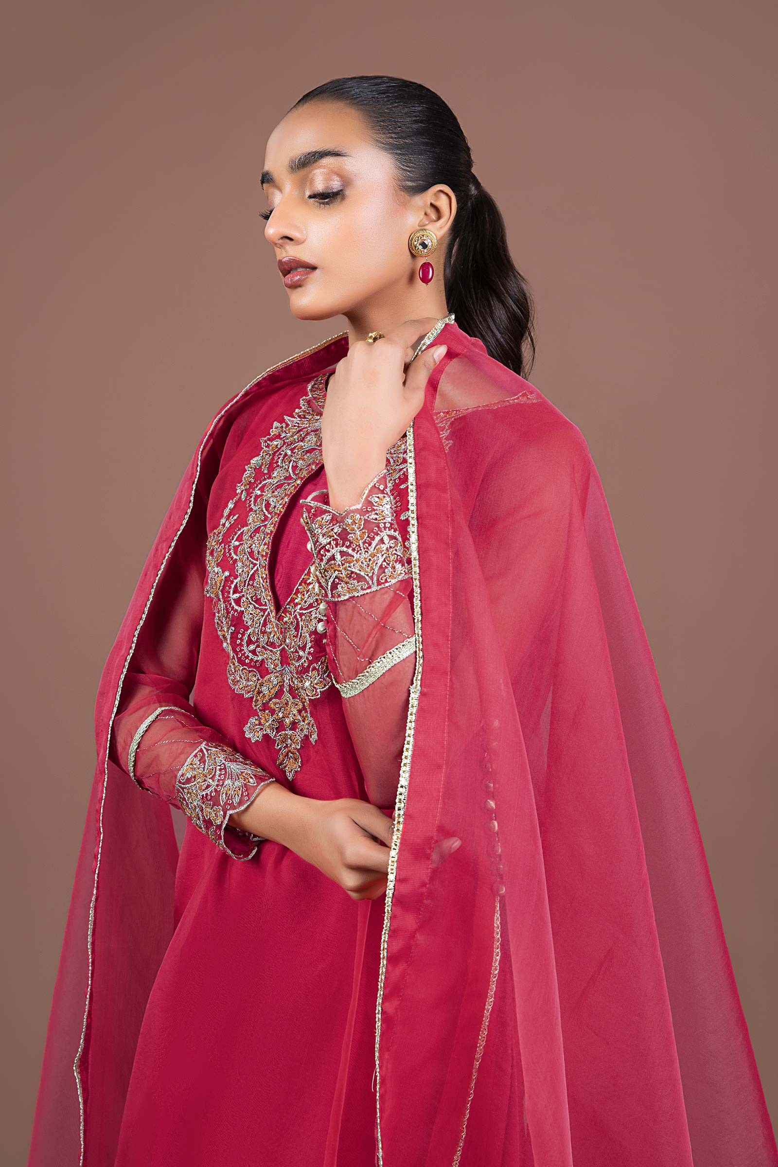 Complementing your festivities with scintillating sequins, tilla, and thread embroideries illustrating captivating floral designs in a mesmerizing red hue. Paired with high-waist dyed culottes with top stitches on the hem, this look offers timeless allure.