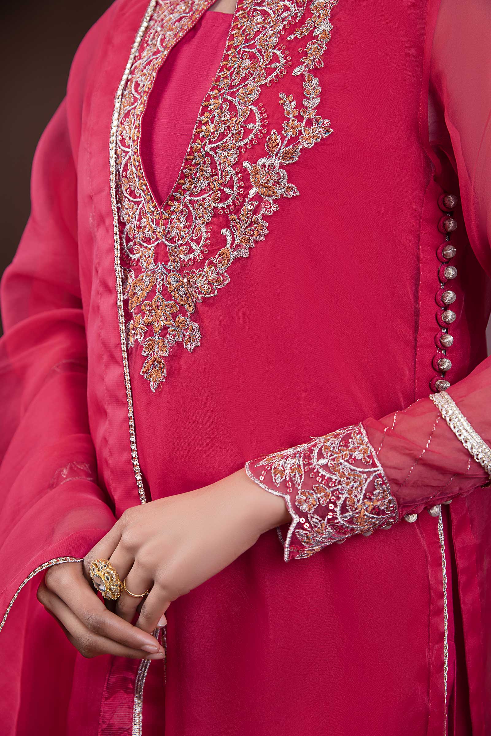 Details: Sequins, Tilla, Thread Embroidered Dyed Long Shirt, Embroidered Round Neckline With Buttoned Loop, Embroidered Full Sleeves, Buttoned Loop Side-Seams, Tilla Lace Detailing On Open Side Slits & Border