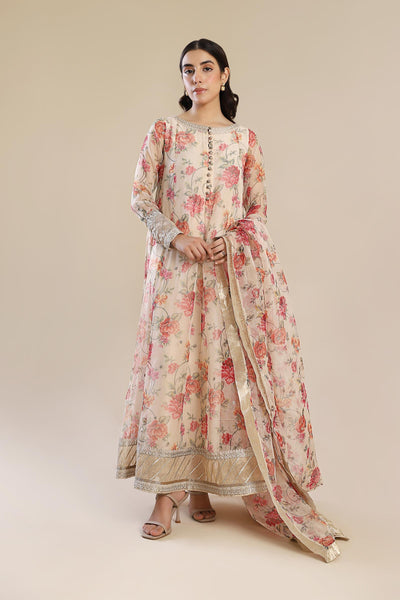 Printed Kalidar Frock With Embroidery & Lace Detailing