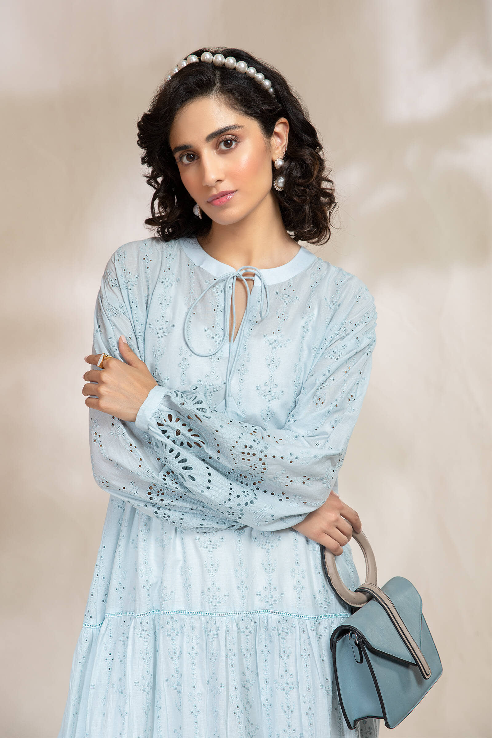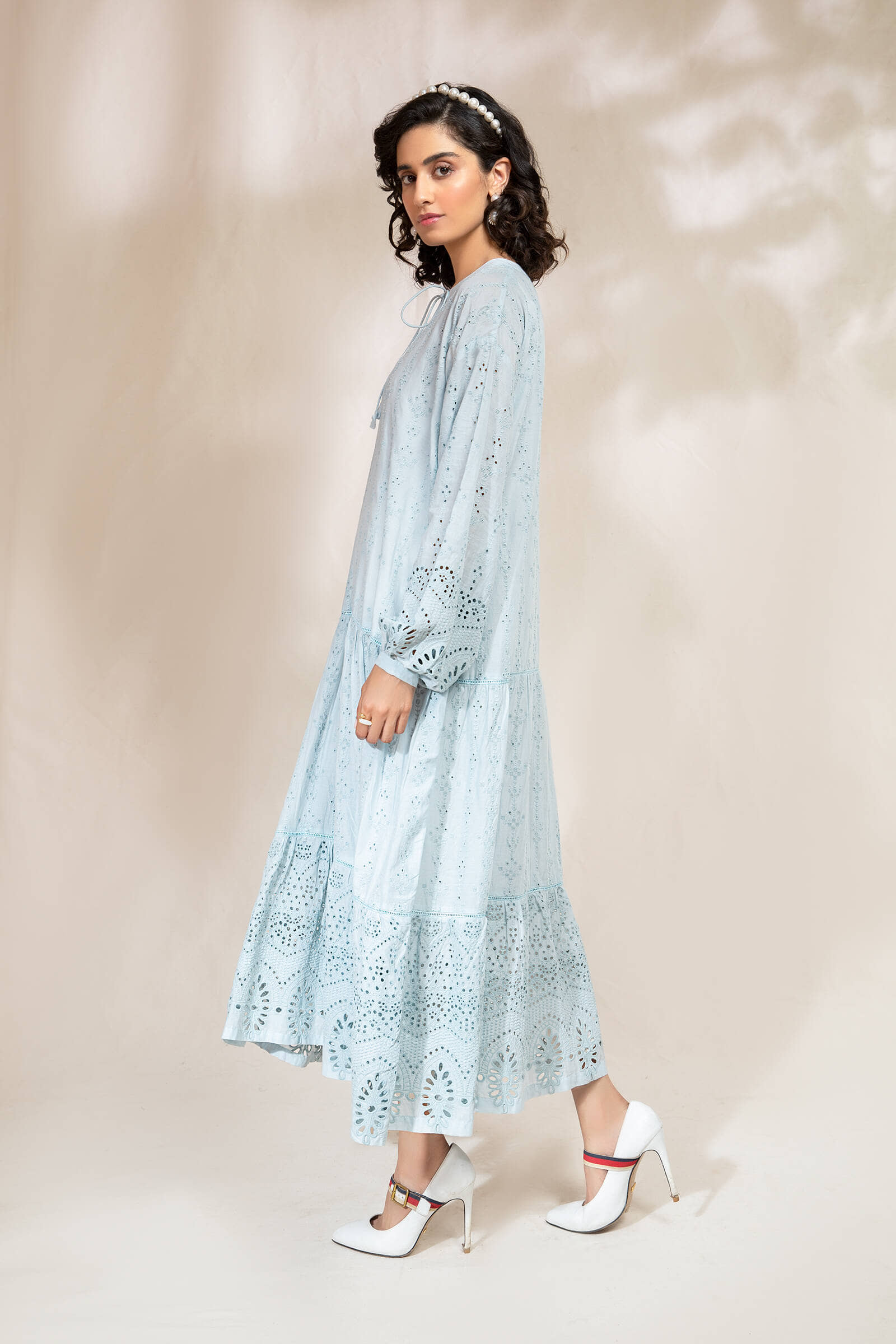 Shirt fabric: Lawn Schiffli tiered dress with lace details