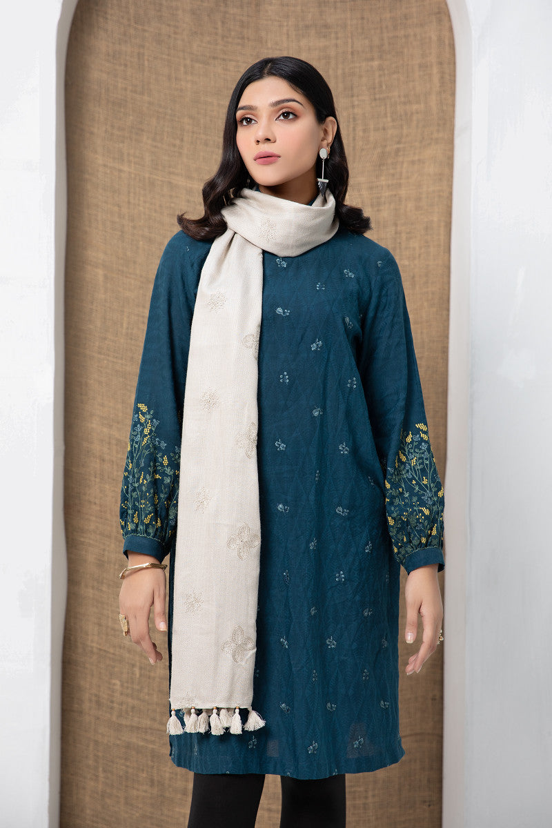 Embroidered scarf feaurting tassel