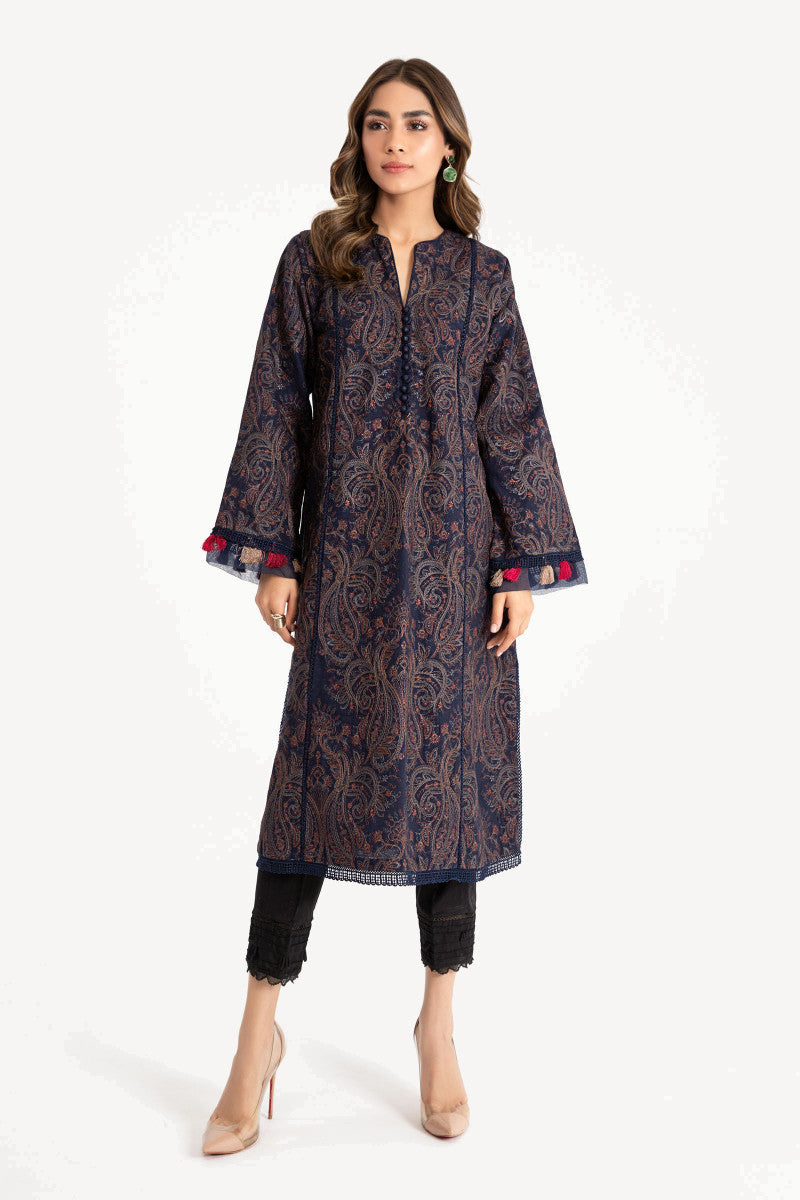 Running embroidered kurta featuring lace.