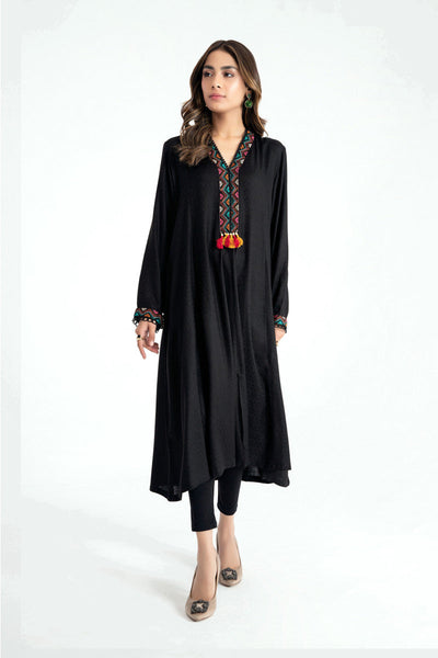 Embroidered dress with tassel details.
