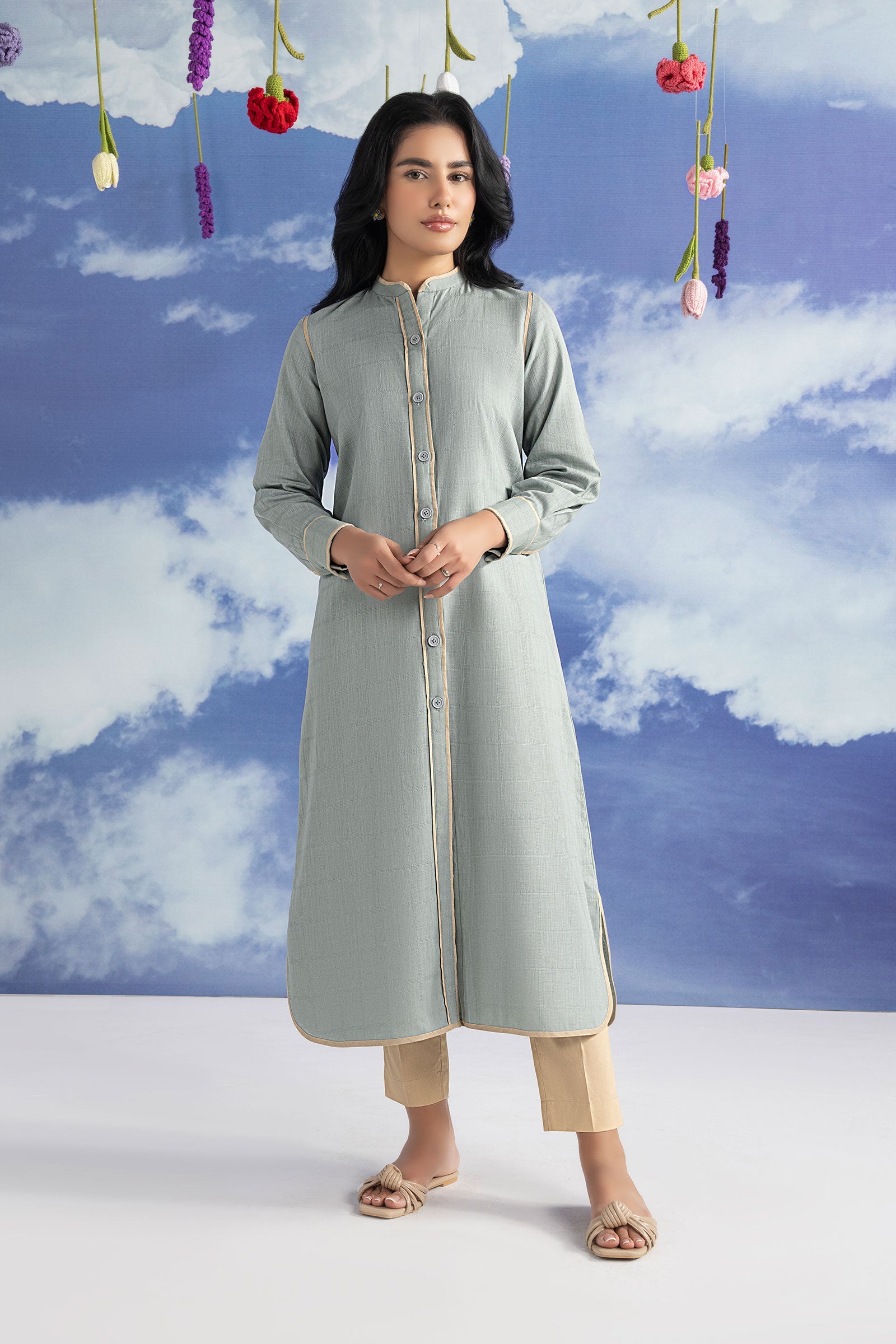 Band Collar Neckline With Binding Detailing