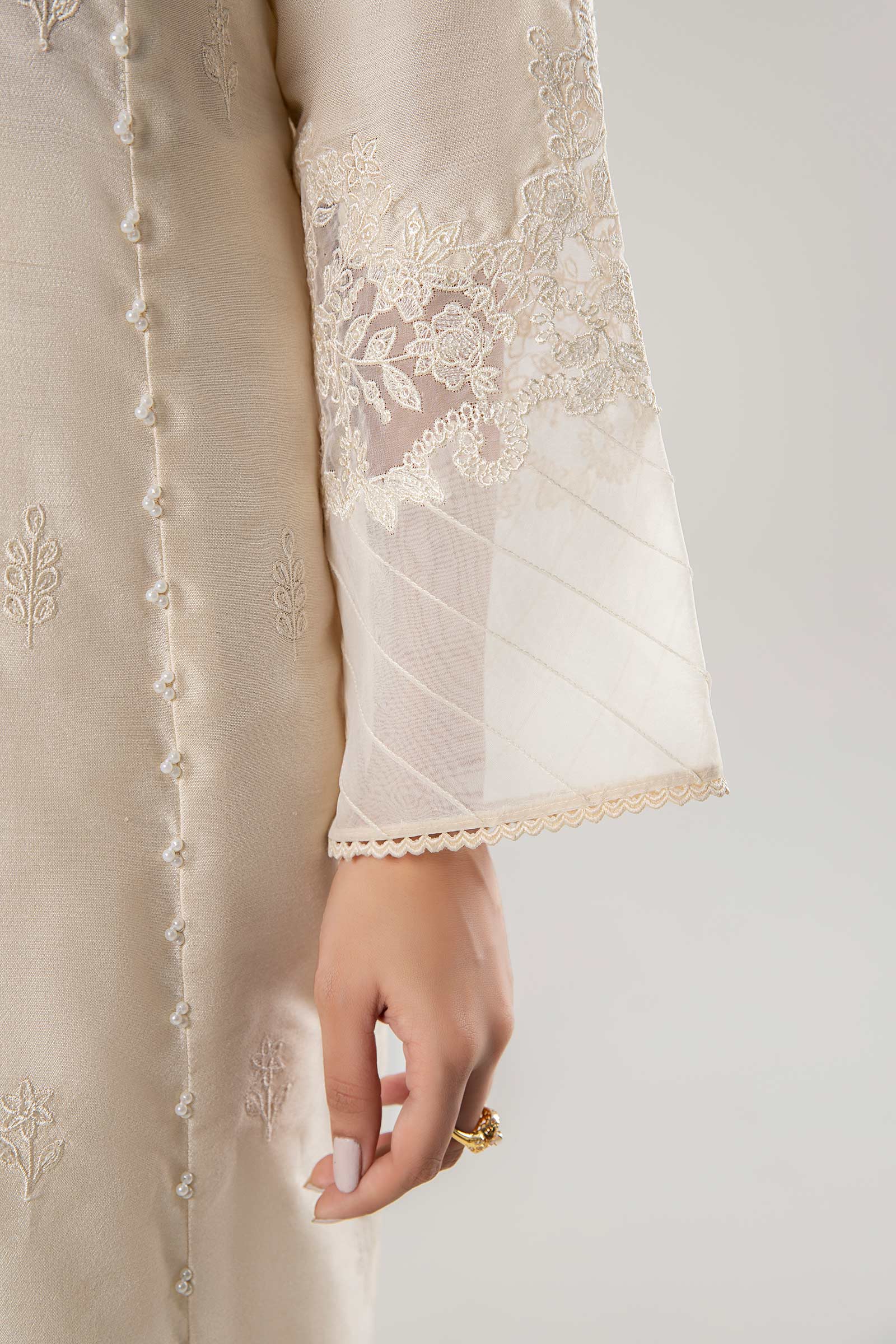 Full Sleeves With Embroidery & Pleated Organza Detailing