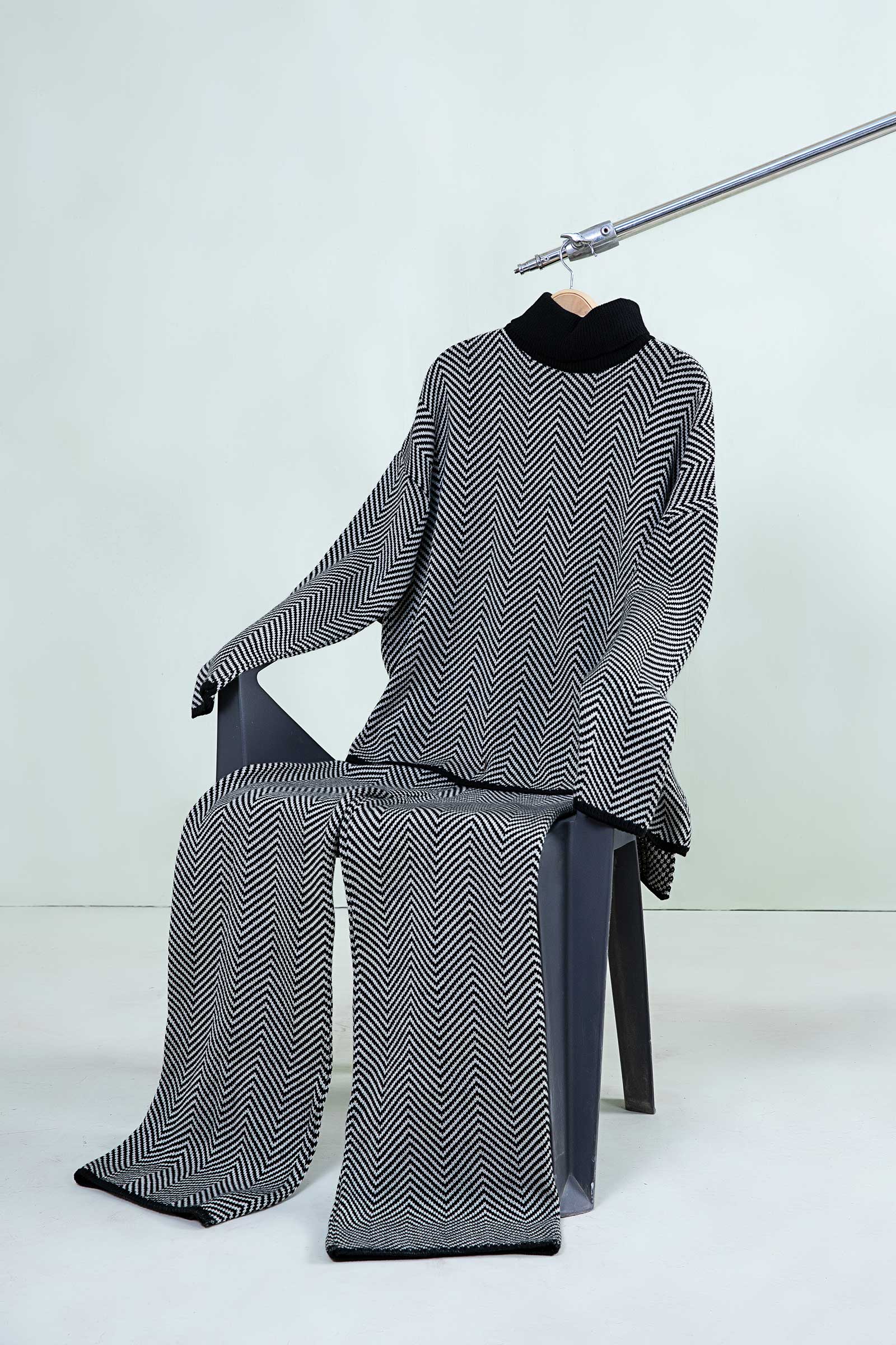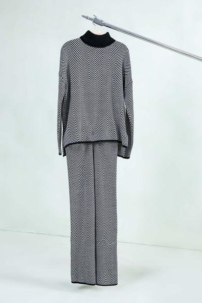 Classy, simple yet graceful; this co-ord set features a self-textured design with a turtle neck in an ultra-soft and luxurious wool silhouette for a fashionable yet comfortable look.