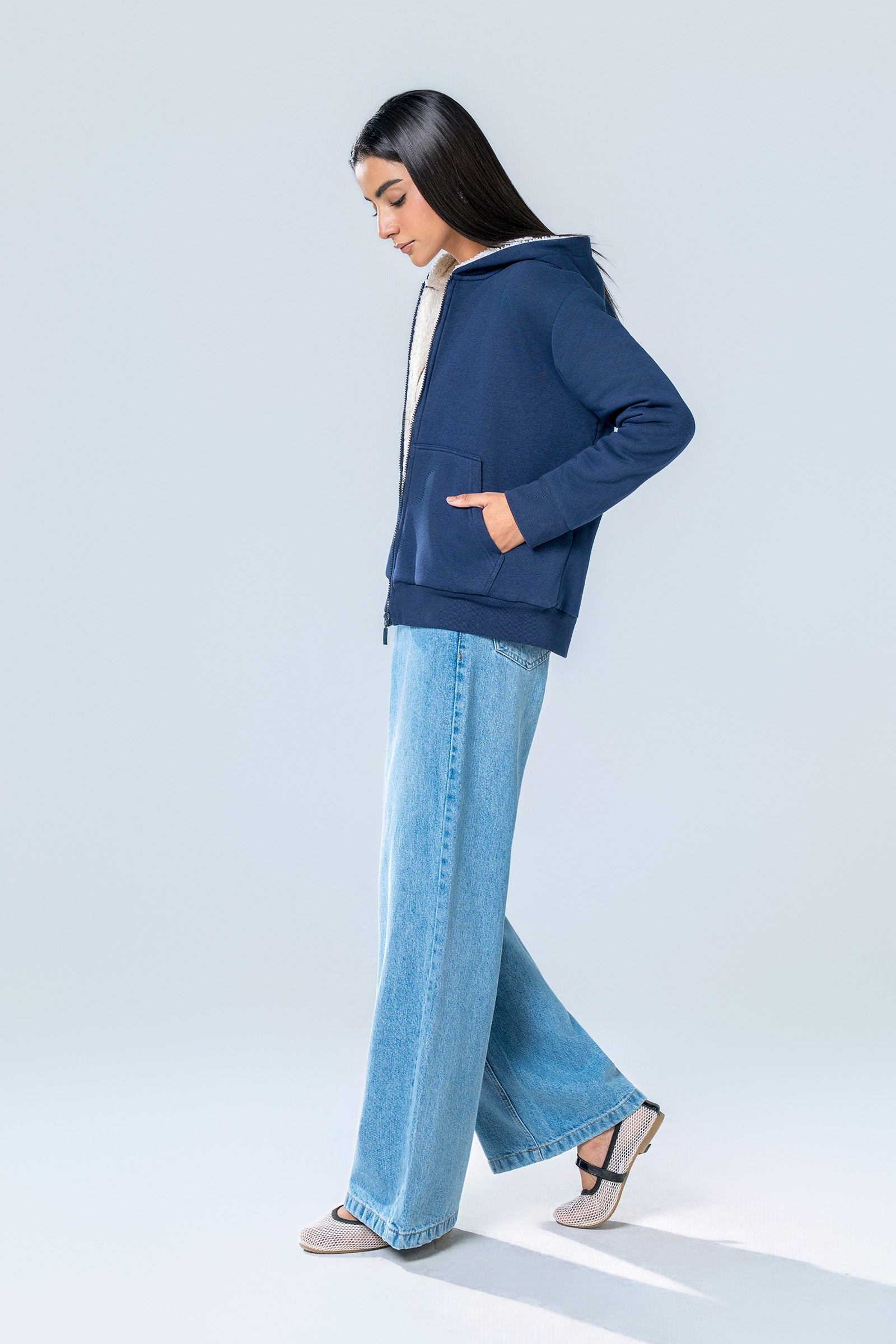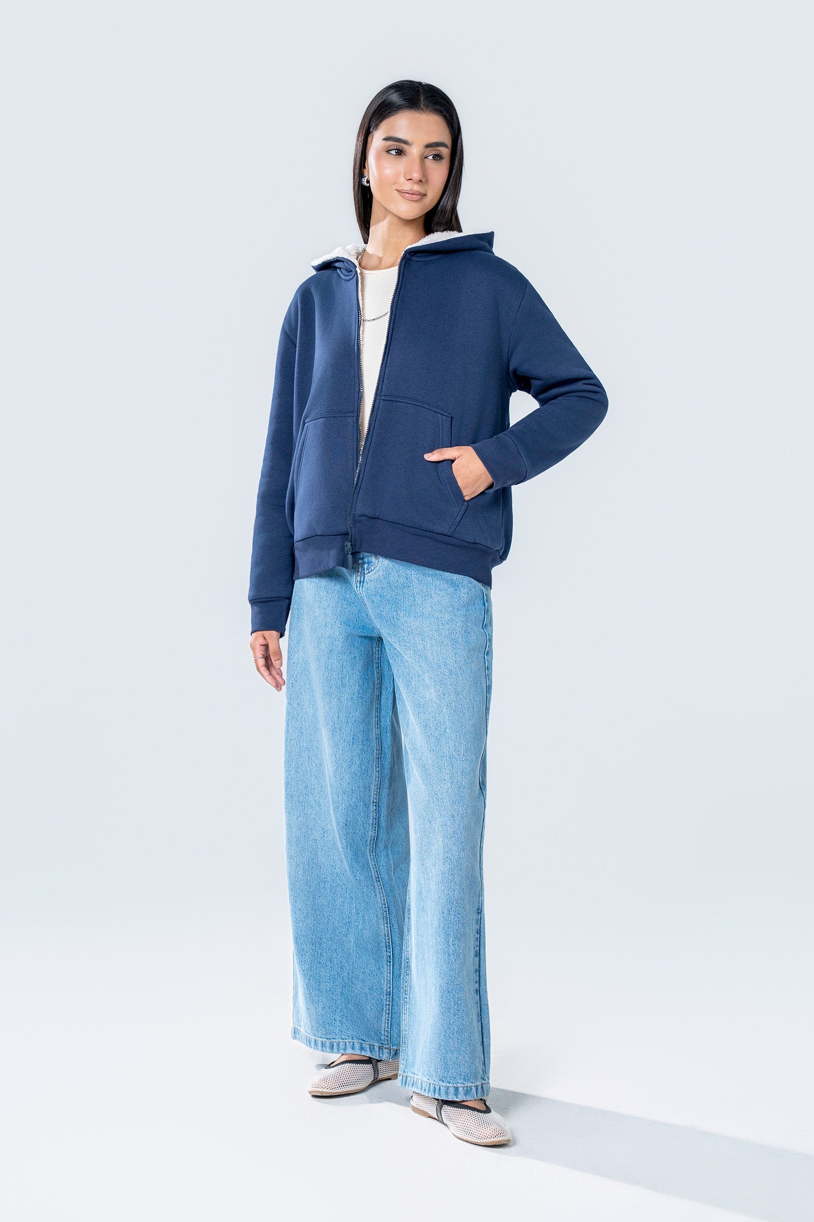 Fleece Hoodie With Zipper Opening, Long Sleeves, Sherpa Lining & Embossed Back Logo