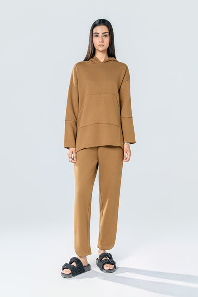 Co-ord Set With Hoodie featuring Panel Detailing At Front, Sleeves & Side Slits, Paired With Bottoms Featuring Curved Hem Detail.