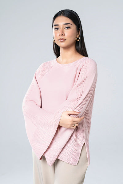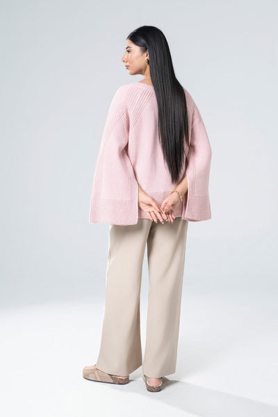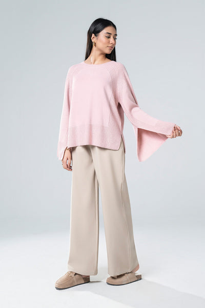 Sweater With Ribbed Round Neckline & Hem, Long Sleeves With Slits & Side Slits At Hem.