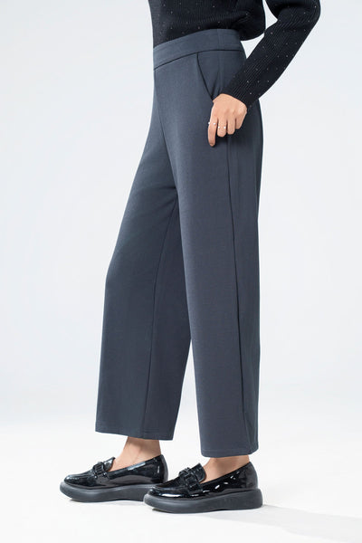 Wide-Leg Pants With Cross Pockets & Side Seam Invisible Zipper Opening.